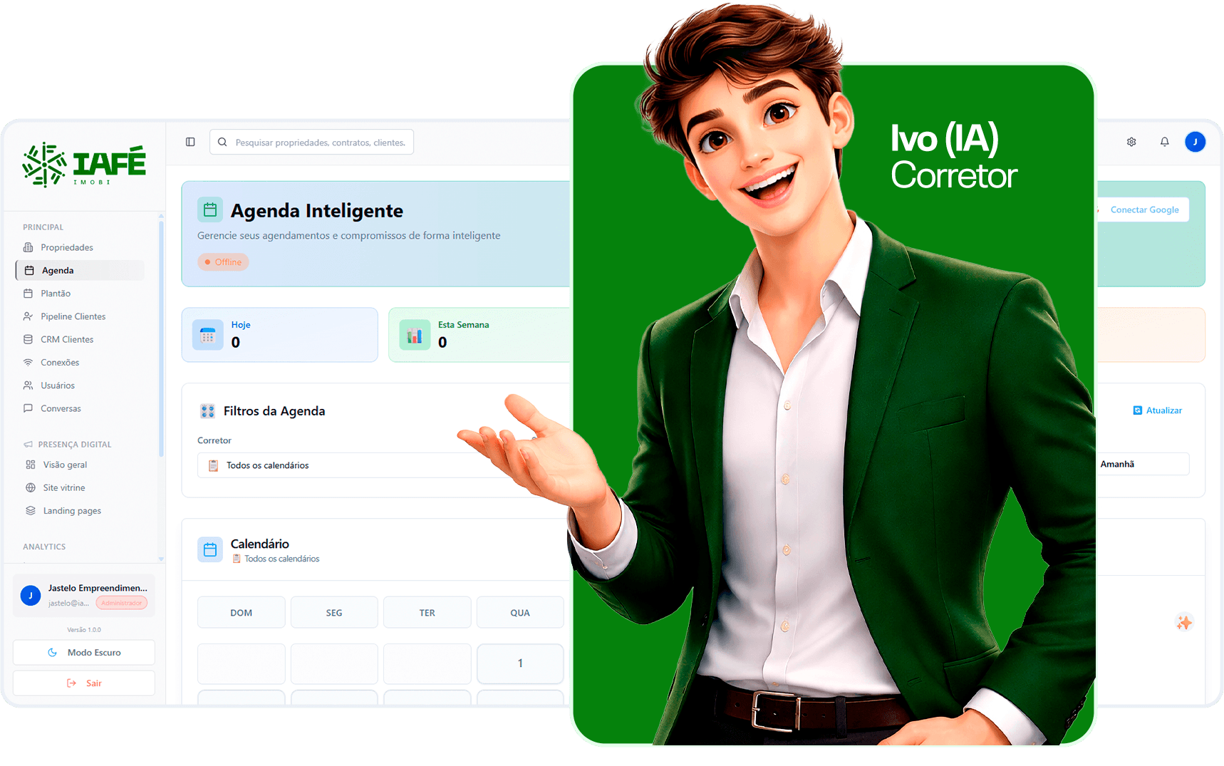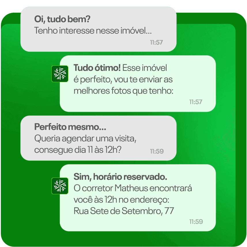 A IA inicia o atendimento automaticamente, qualifica leads, agenda visitas e integra com WhatsApp.